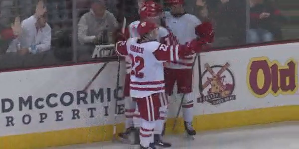 An empty net goal at 17:40 sealed it for the Badgers (6-8-1, 4-5-0 B1G), who won for the fourth time in five games. For Wisconsin, Quinn Finley had a pair of goals – both in the third period, one into an empty net. Tyson Dyck and Owen Melenbacher had the other tallies. Goalie Tommy Scarfone made 26 saves.