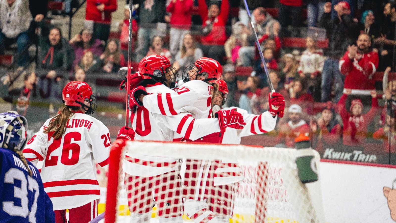 Trailing 3-2 In the second game of the series, Kirsten Simms tied the game up with a minute and a half remaining to send it into overtime. Cassie Hall secured Wisconsin the win in sudden-death scoring the game-winner for the 4-3 victory.