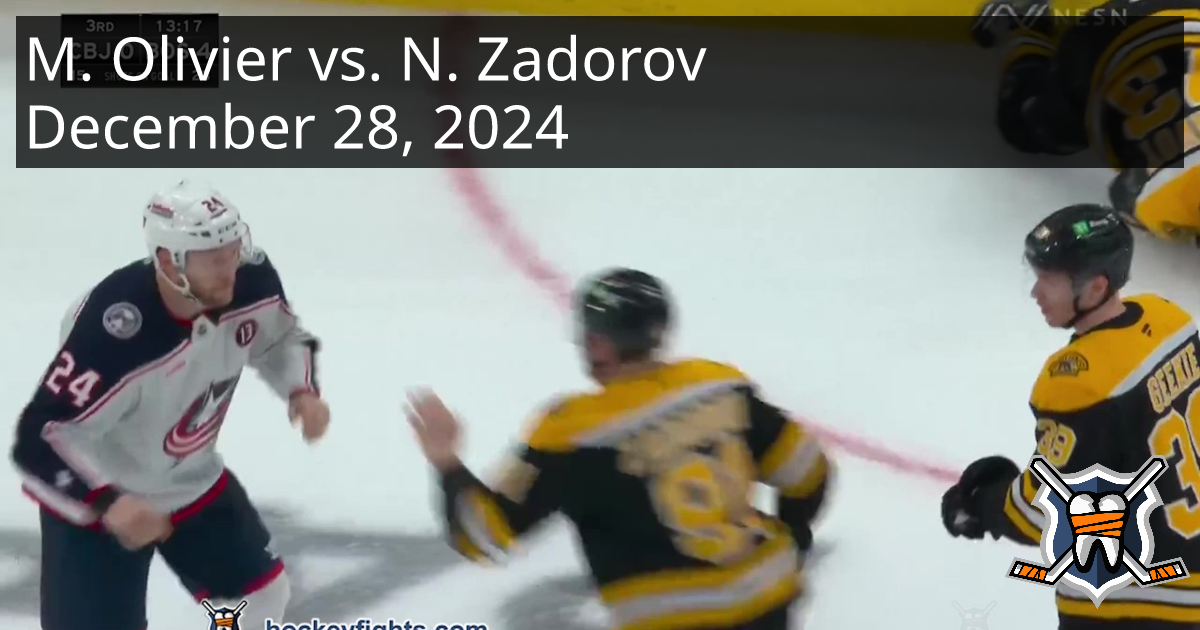 NHL Mathieu Olivier vs. Nikita Zadorov, December 28, 2024 – Columbus Blue Jackets vs. Boston Bruins – hockeyfights.com adminDecember 30, 2024 No Comments source