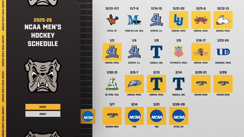 ADRIAN, Mich. – The 2025–26 season is fast approaching for the Adrian College NCAA Division III men’s hockey team, and the Bulldogs have officially announced their schedule. Following an 18-10-1 campaign last season, Adrian is aiming to build on that success as they gear up for another challenging slate of games.