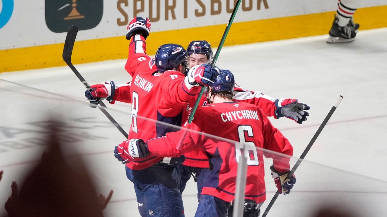 Ovechkin took a pass from Dylan Strome and rifled a shot from deep in the right circle that hit the post and deflected off goalie Spencer Knight’s back at 3:52 of the first period. Strome has assisted on 20 of Ovechkin's goals this season.