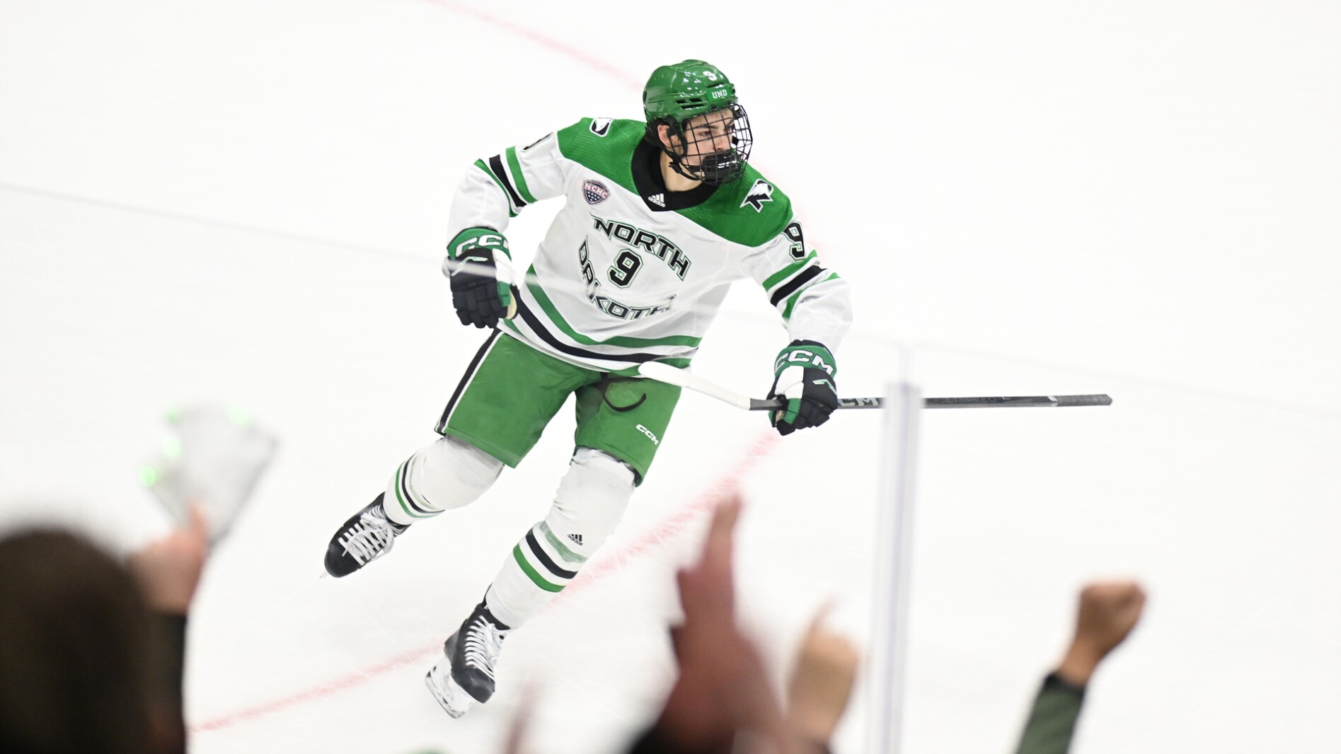 It was fitting he scored his first-career goal for the Fighting Hawks in front of them during UND’s 5-2 win over Providence in the U.S. Hockey Hall of Fame Game.